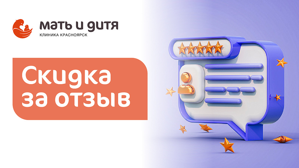 Оставьте свой отзыв после посещения нашей клиники и получите скидку 10%* на следующий (повторный) прием.