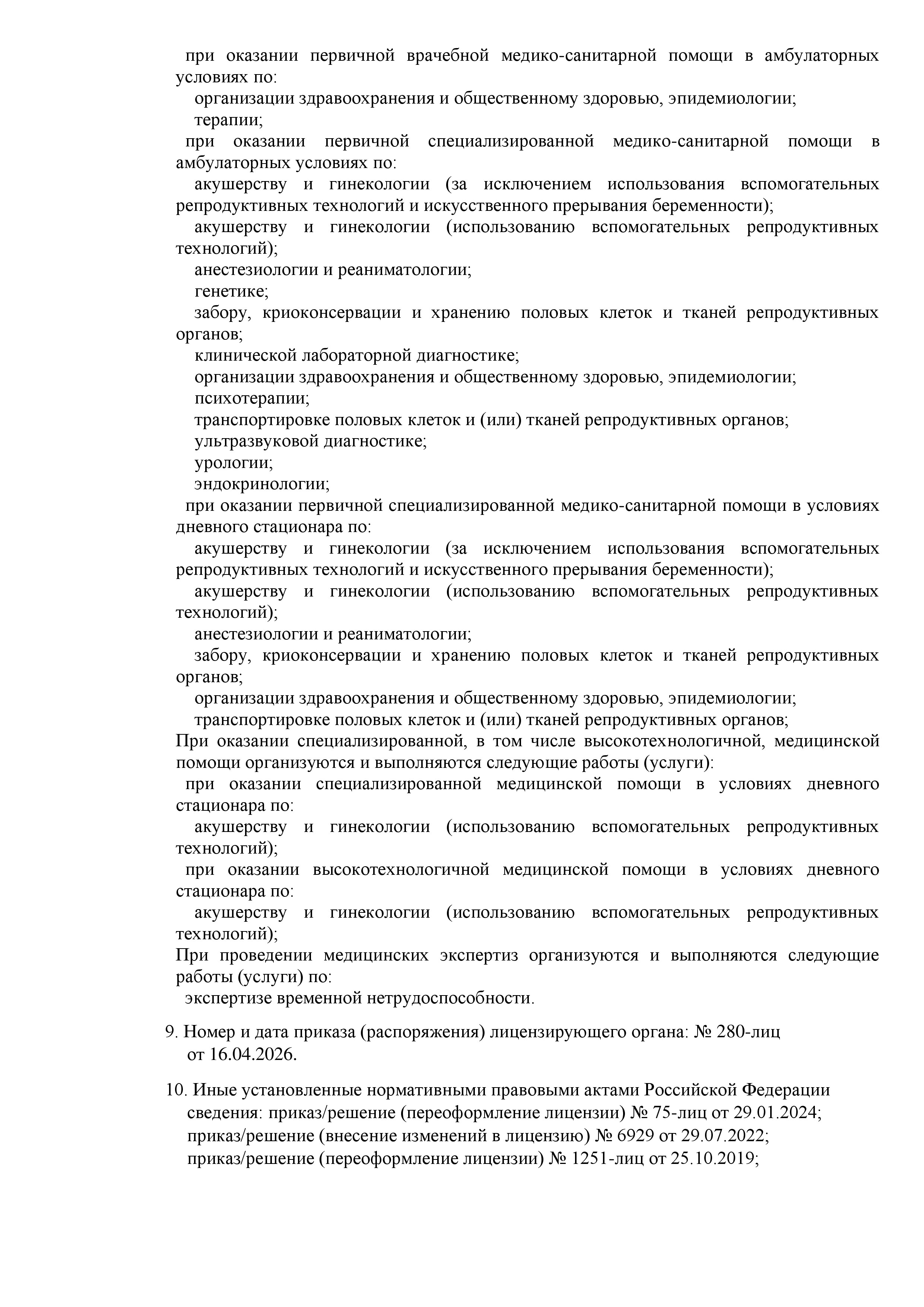 - прием узких специалистов — врачей высшей квалификационной категории: терапевта, гинеколога, акушера-гинеколога, гинеколога-эндокринолога, сексолога, эндокринолога, уролога, эндокринолога-андролога, психолога;